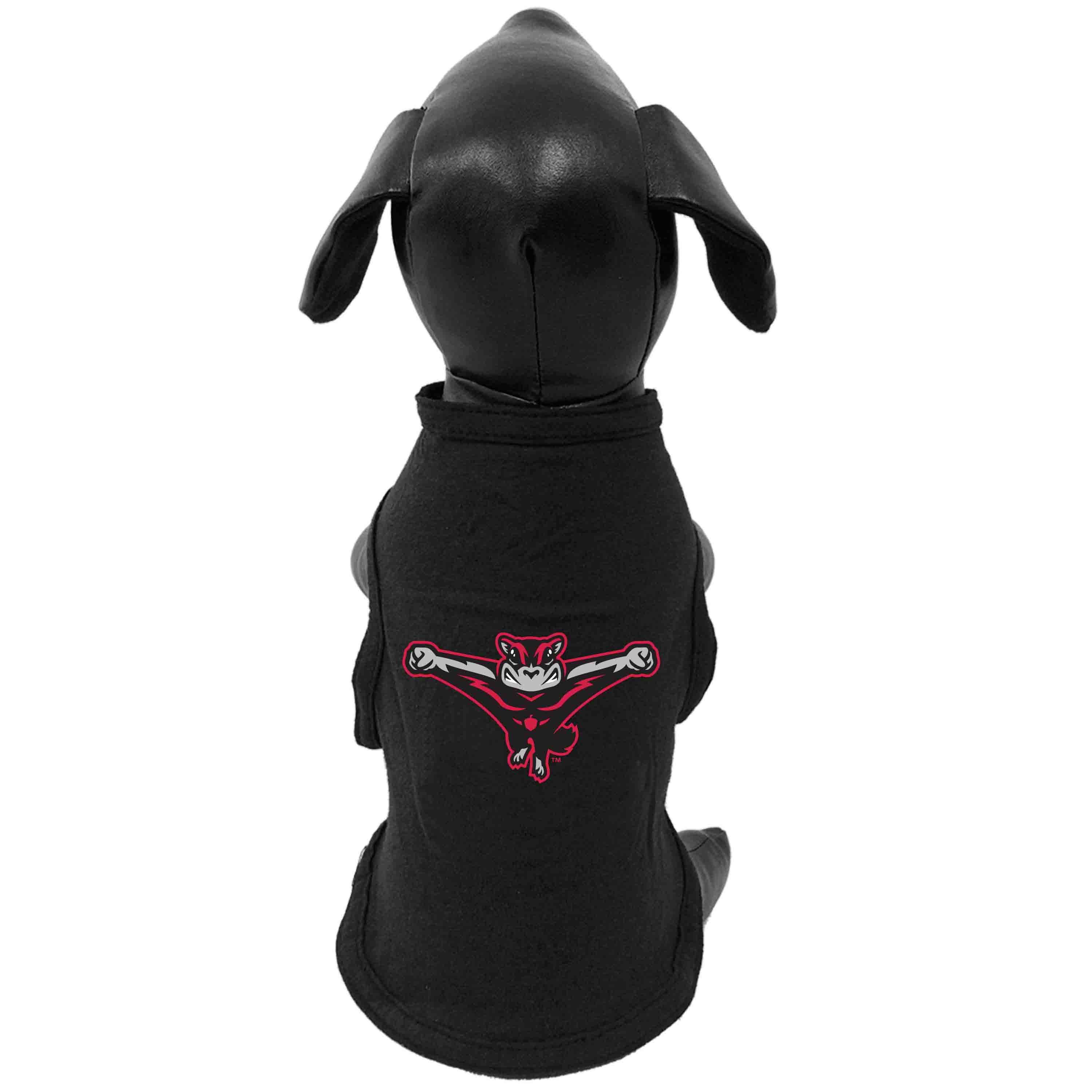 Lightweight hooded pet shirt with leash opening and embroidered team logo