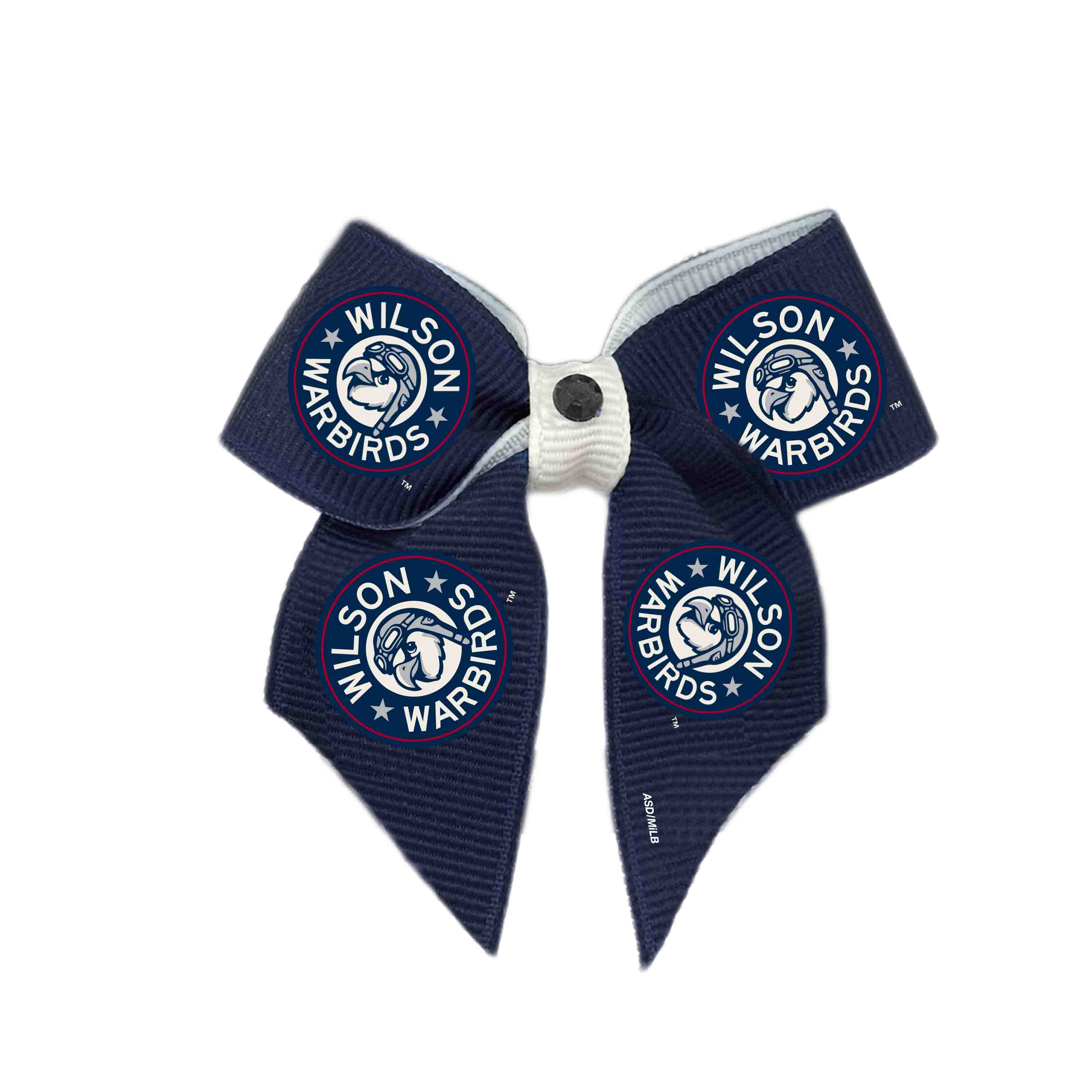 Grosgrain ribbon with printed team logo wrapped and jeweled with rhinestone and barrette closing.