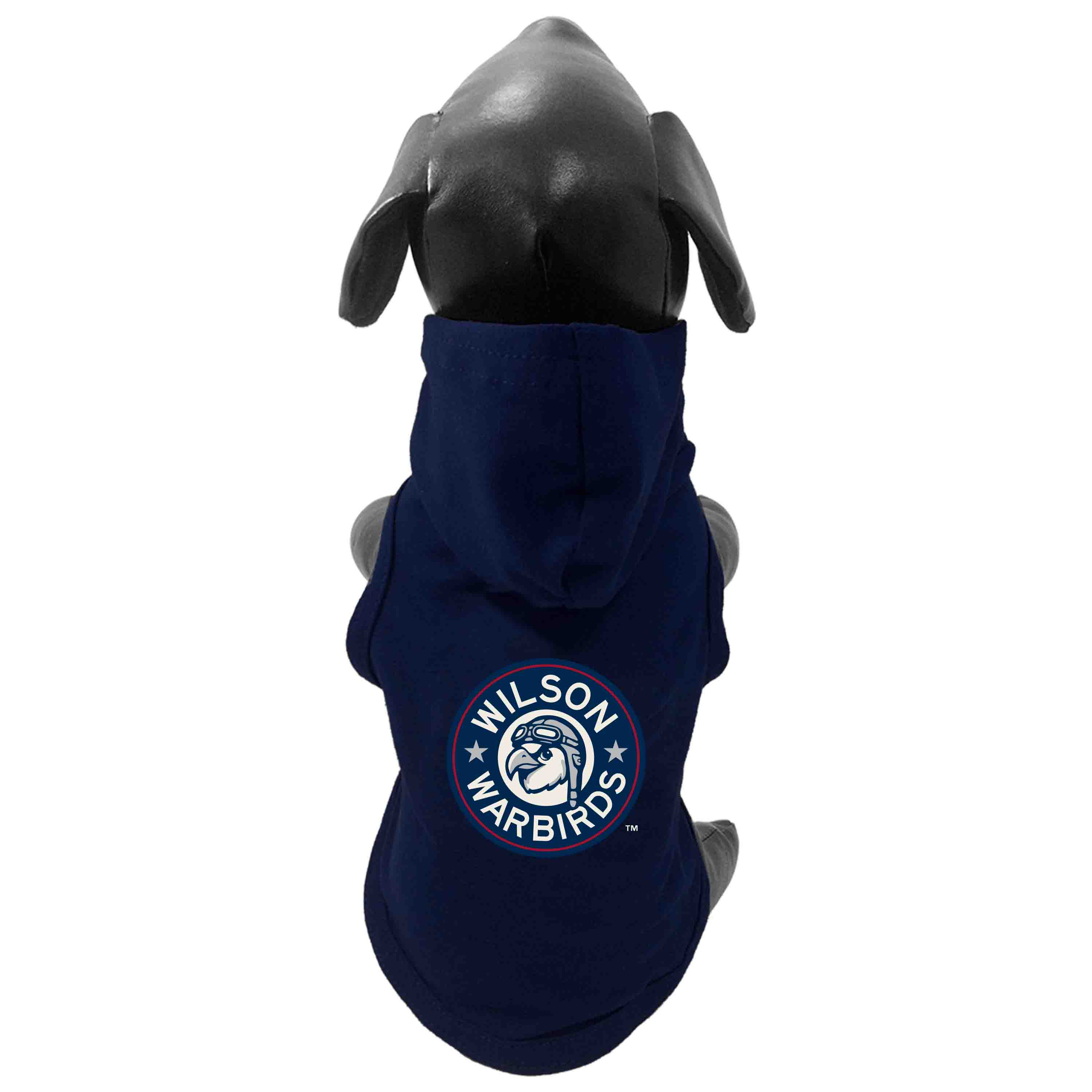 Lightweight hooded pet shirt with leash opening and embroidered team logo