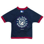 Two-tone dimple mesh pet jersey with environmentally friendly dye sublimated team logo.