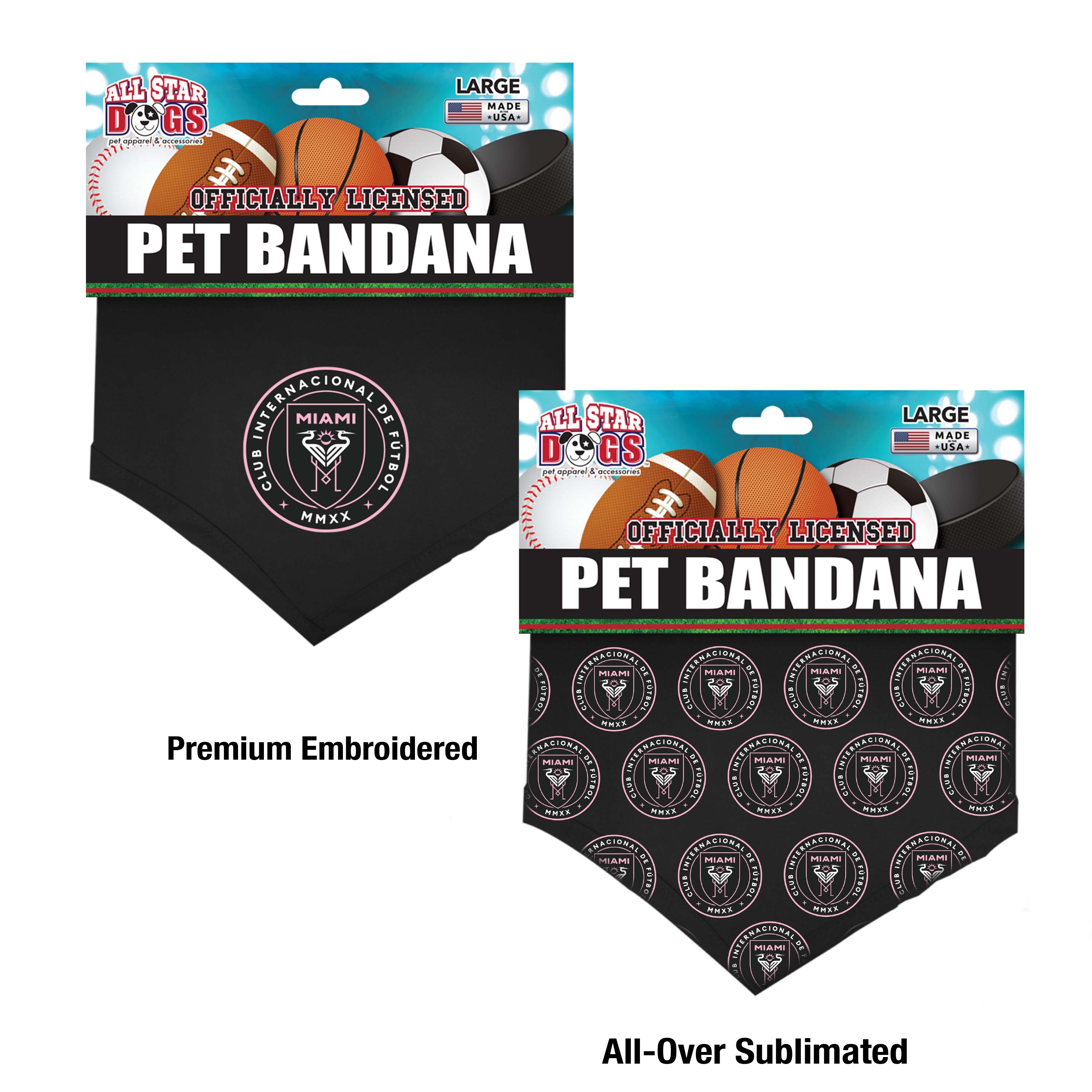 Cotton Shirting pet bandana with embroidered team logo. Also available as all-over print sublimated poly blends.