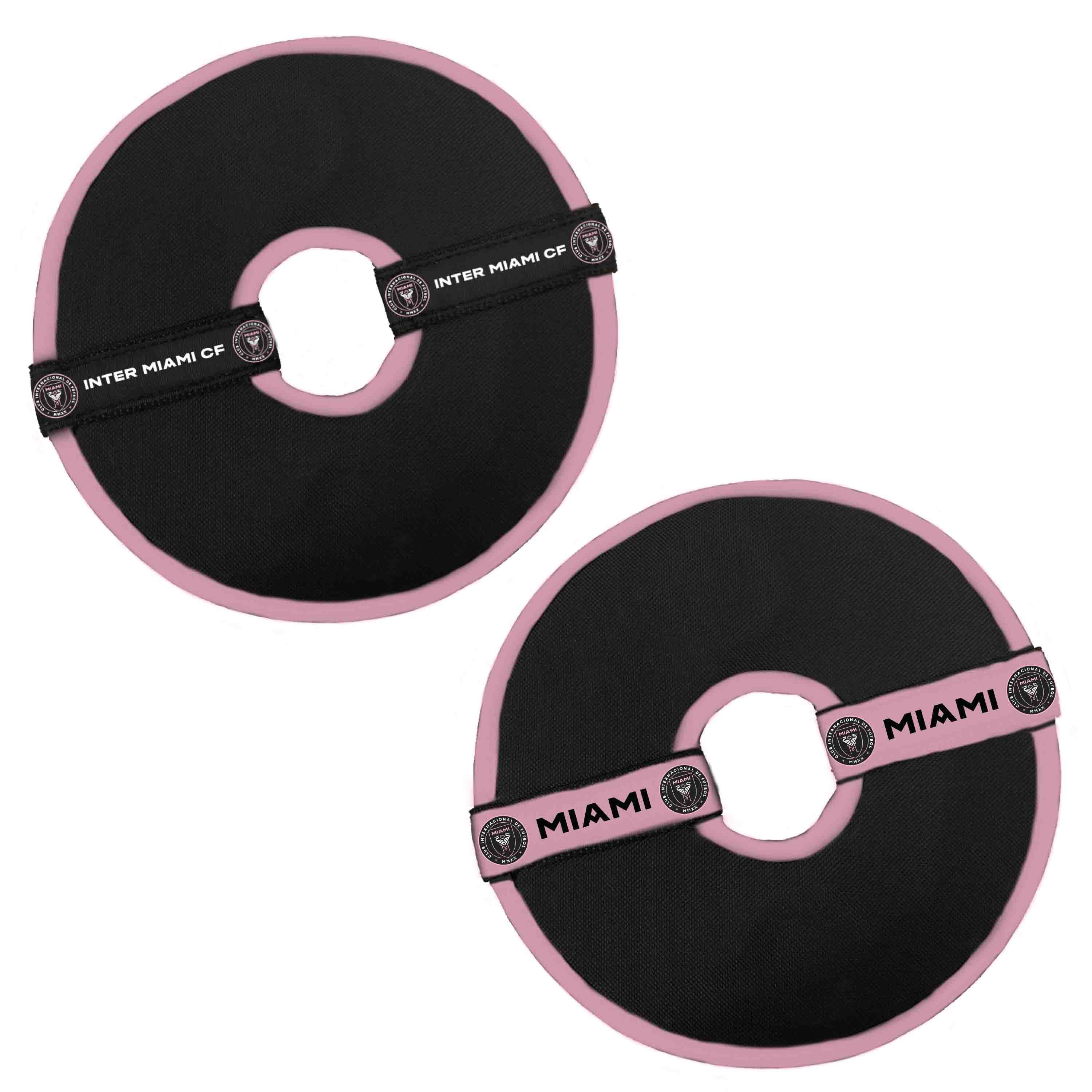 Pet friendly flying discs are constructed out of water repelling 900 denier canvas.