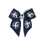 Grosgrain ribbon with printed team logo wrapped and jeweled with rhinestone and barrette closing.
