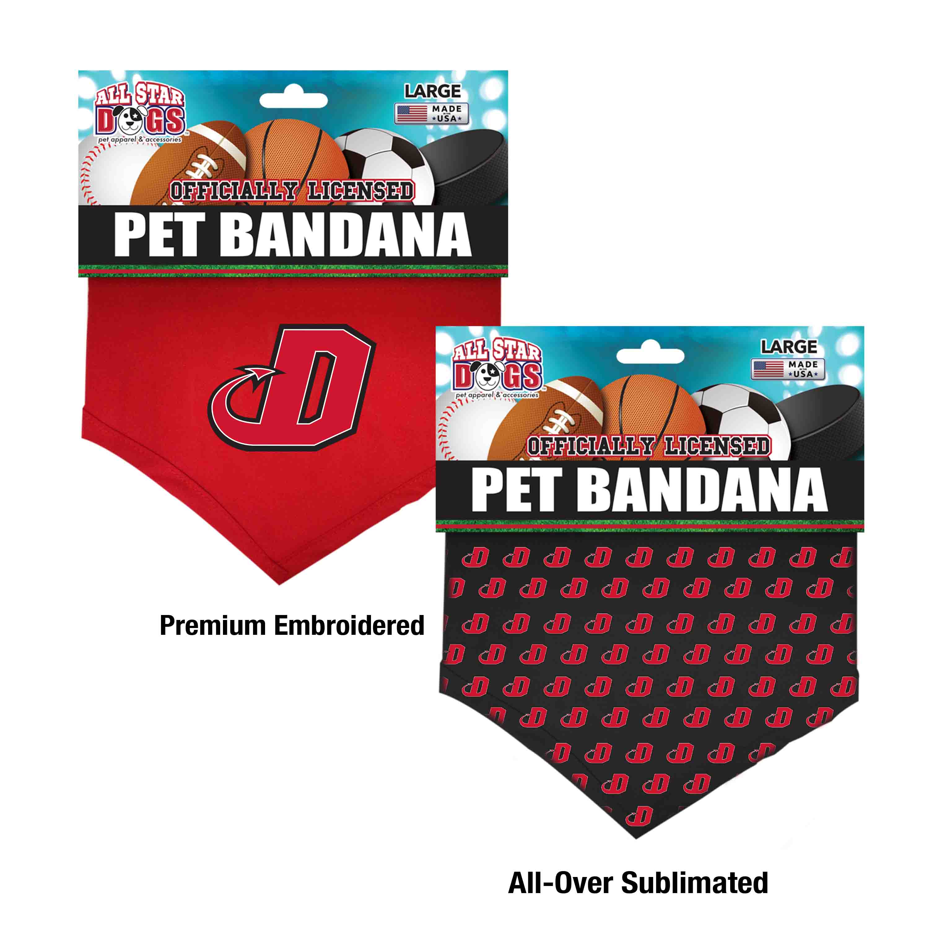 Cotton Shirting pet bandana with embroidered team logo. Also available as all-over print sublimated poly blends.