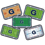 Branded with school logo on front and finished with an all-over sticker decal look on the back.