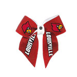 Grosgrain ribbon with printed team logo wrapped and jeweled with rhinestone and barrette closing.