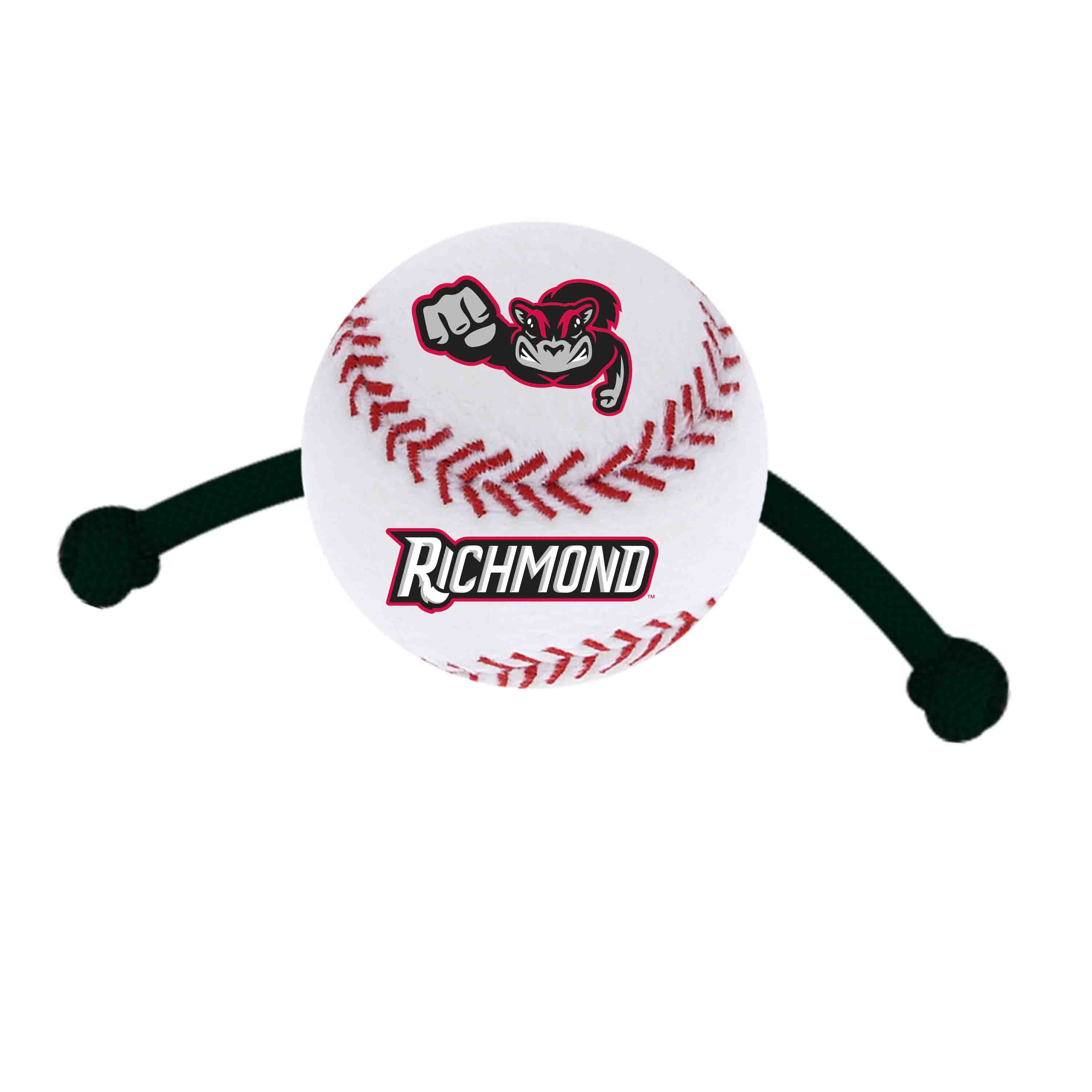 Plush baseball shaped tug toy with non-toxic fill, coordinating rope tug ends, and all-over sublimated print with team logos. Diameter - 6.5”