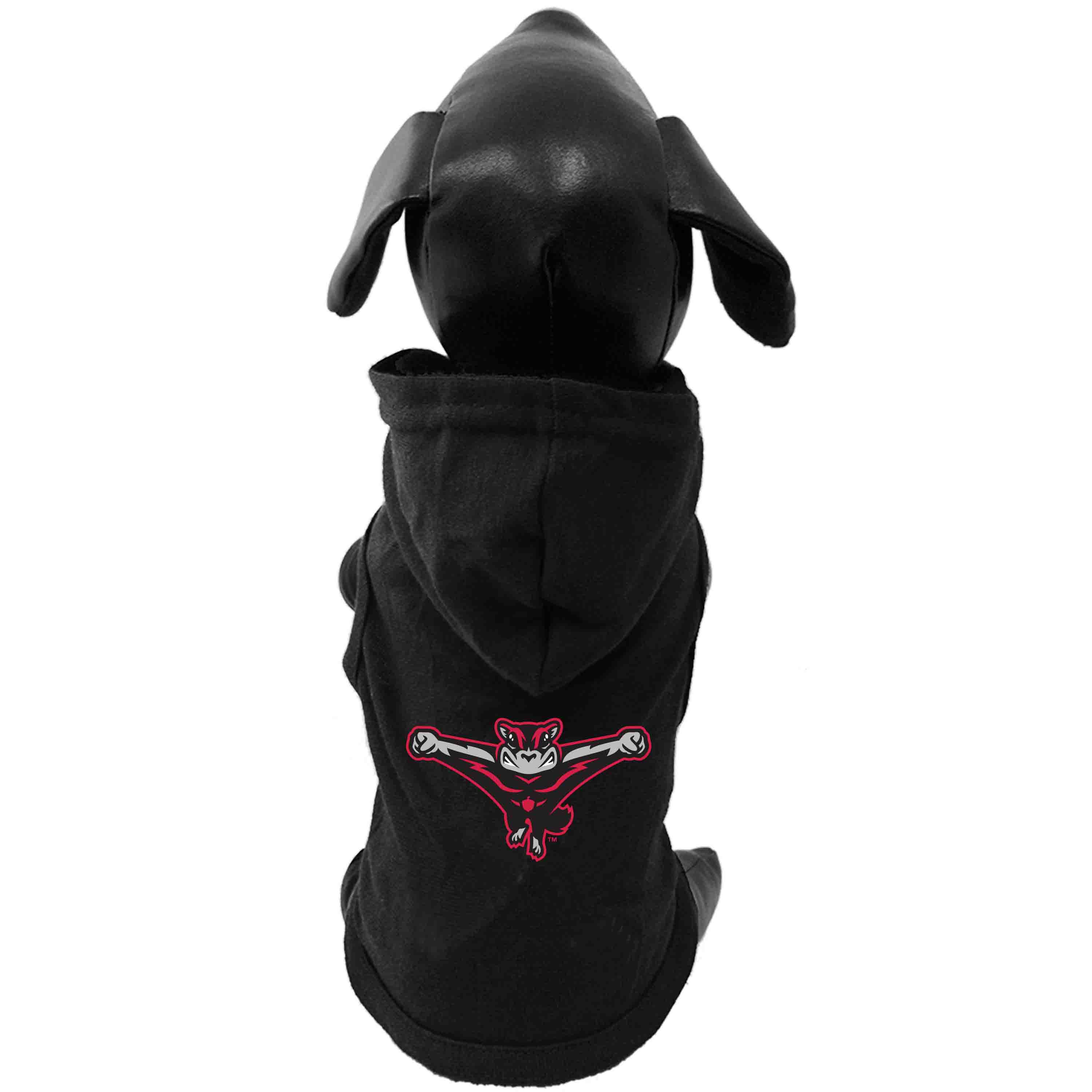 Lightweight hooded pet shirt with leash opening and embroidered team logo