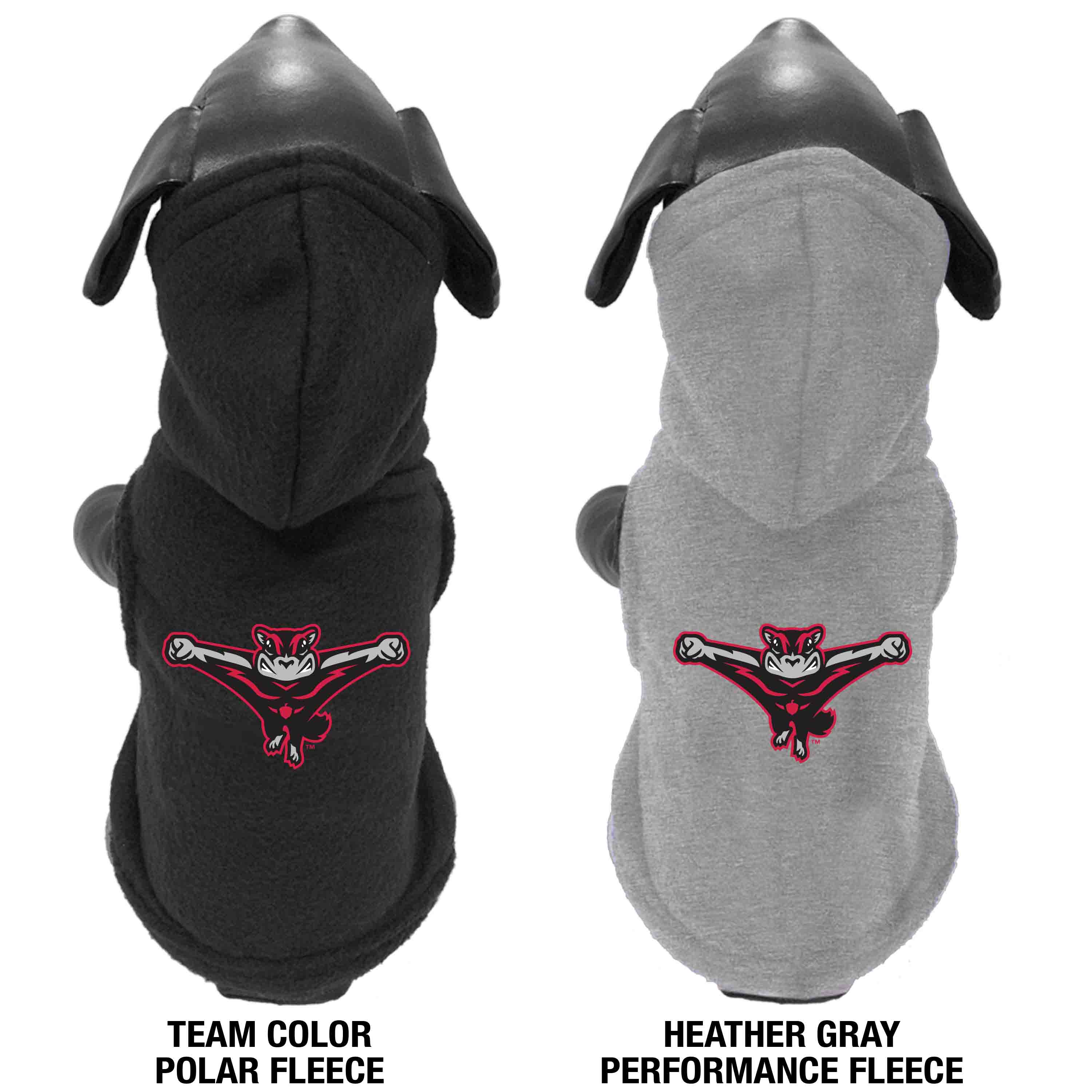 Heavy Polar Fleece hooded pet jacket with leash opening and embroidered team logo.