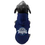 Lightweight hooded pet shirt with leash opening and embroidered team logo