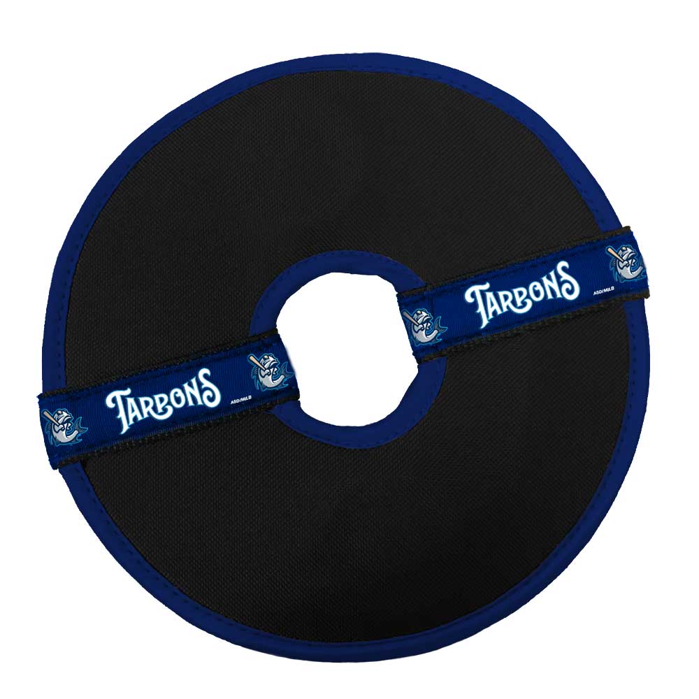 Pet friendly flying discs are constructed out of water repelling 900 denier canvas.