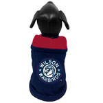 Lightweight hooded pet shirt with leash opening and embroidered team logo