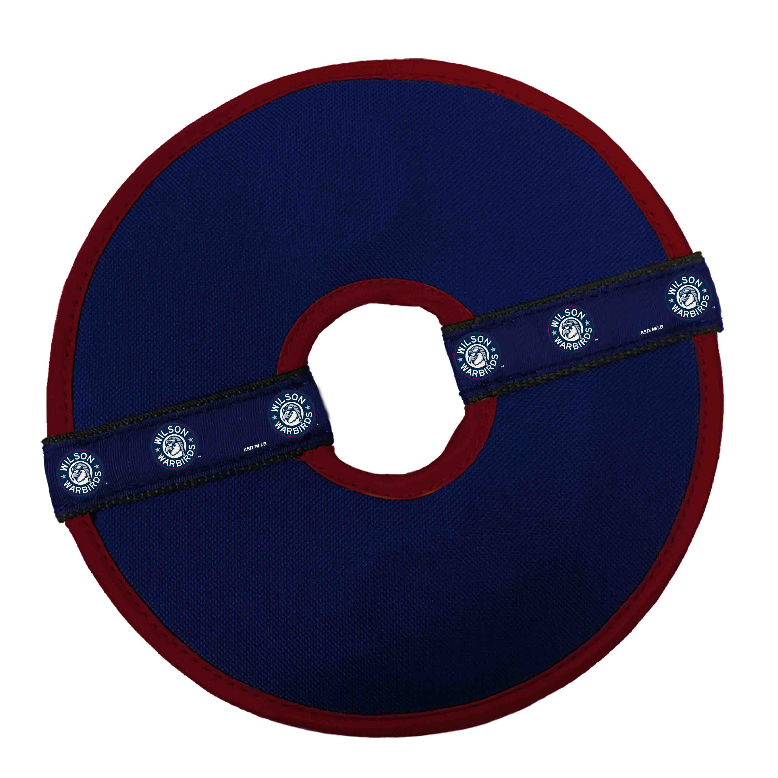 Pet friendly flying discs are constructed out of water repelling 900 denier canvas.