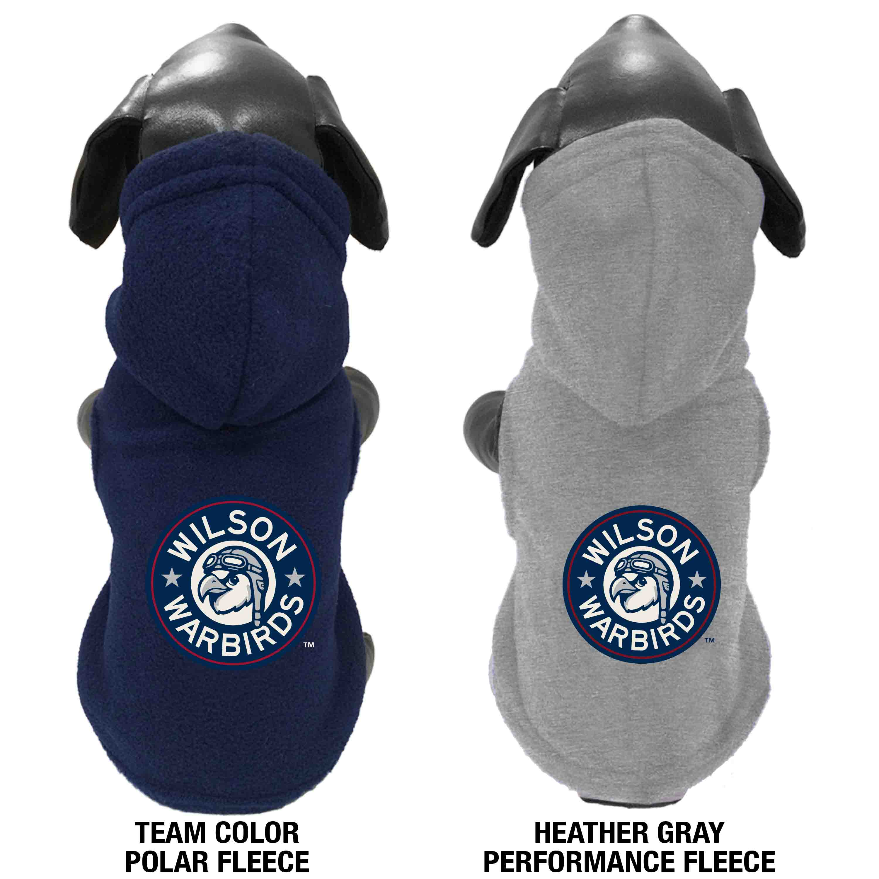 Heavy Polar Fleece hooded pet jacket with leash opening and embroidered team logo.