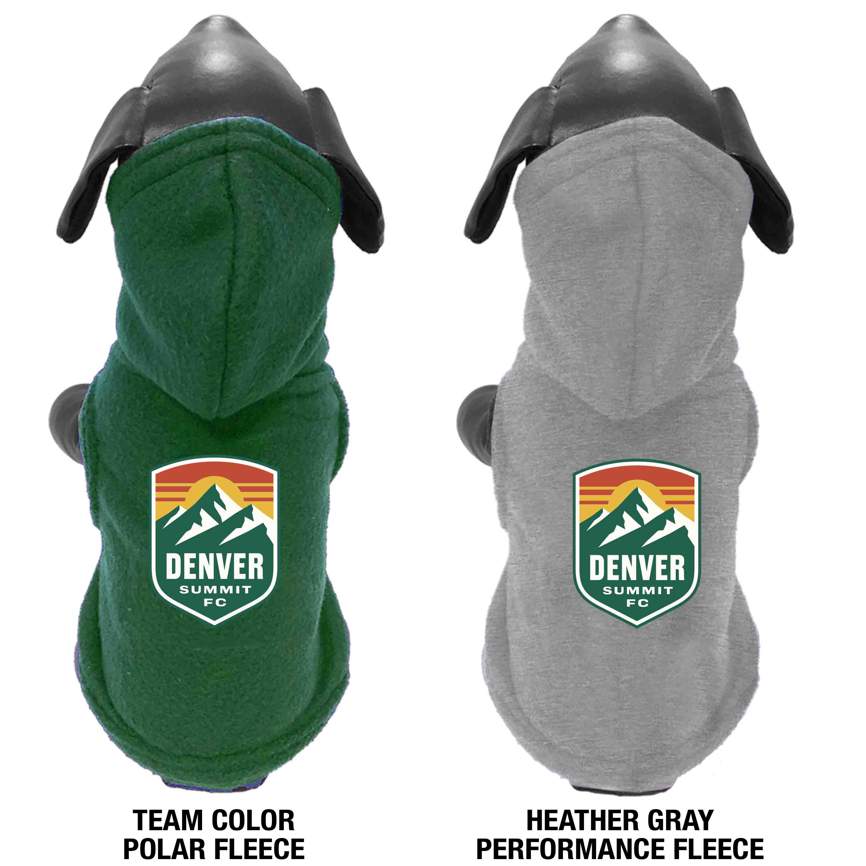 Heavy Polar Fleece hooded pet jacket with leash opening and embroidered team logo.