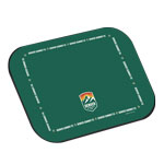 Non-skid placemat with rubber backed polyester face.