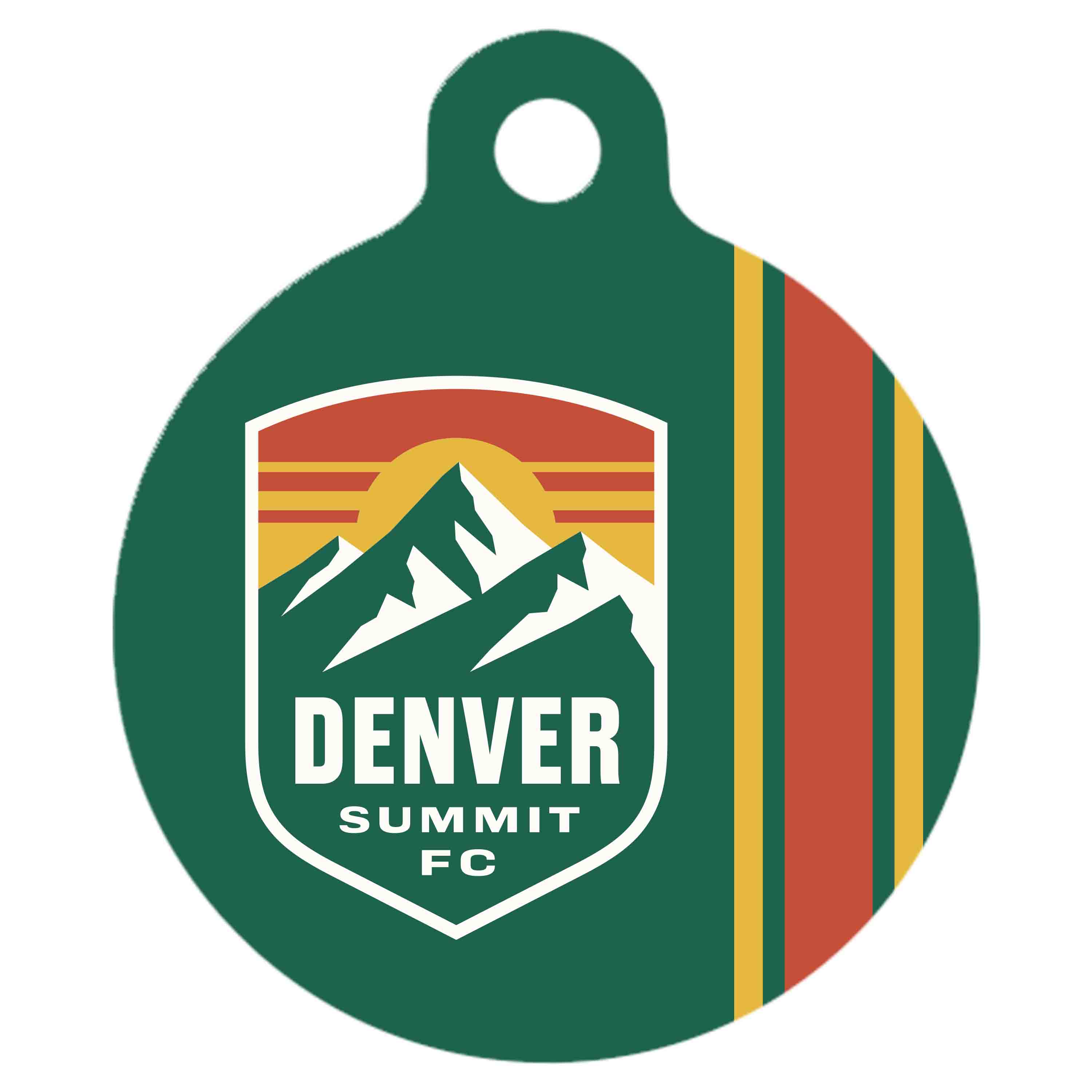 Recycled stainless steel tag with printed team graphics on both sides.