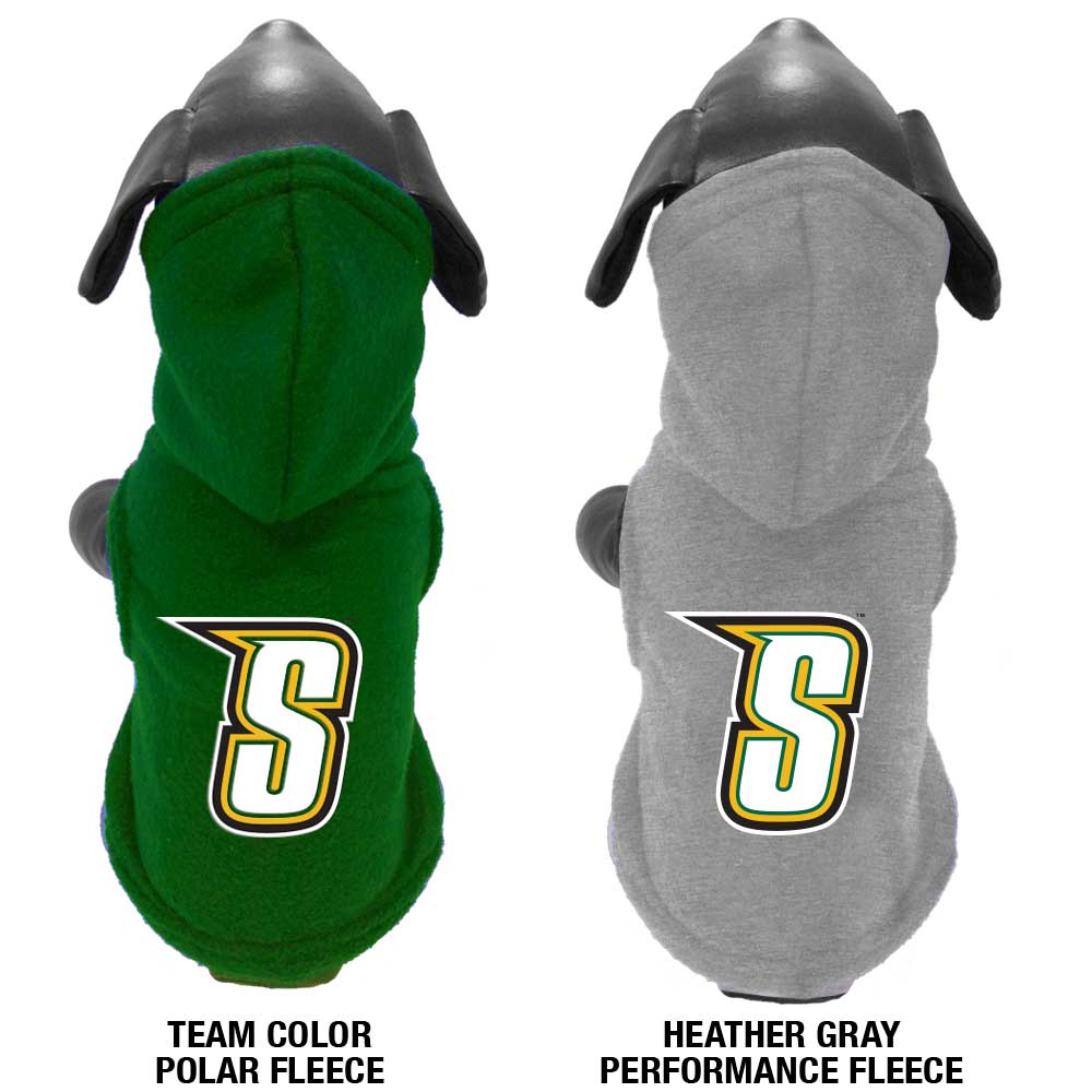 Heavy Polar Fleece hooded pet jacket with leash opening and embroidered team logo.