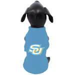 Lightweight hooded pet shirt with leash opening and embroidered team logo