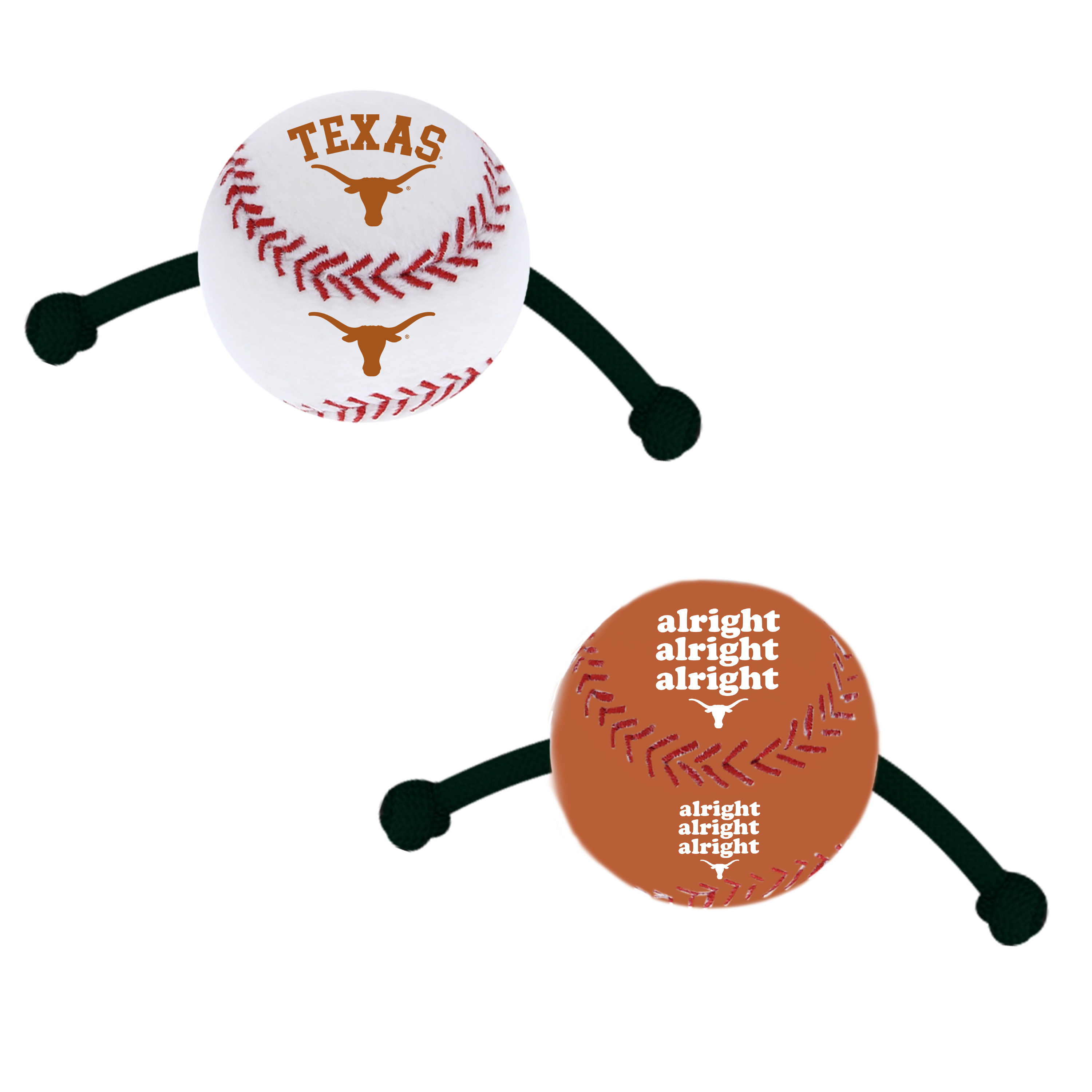 Plush baseball shaped tug toy with non-toxic fill, coordinating rope tug ends, and all-over sublimated print with team logos. Diameter - 6.5”