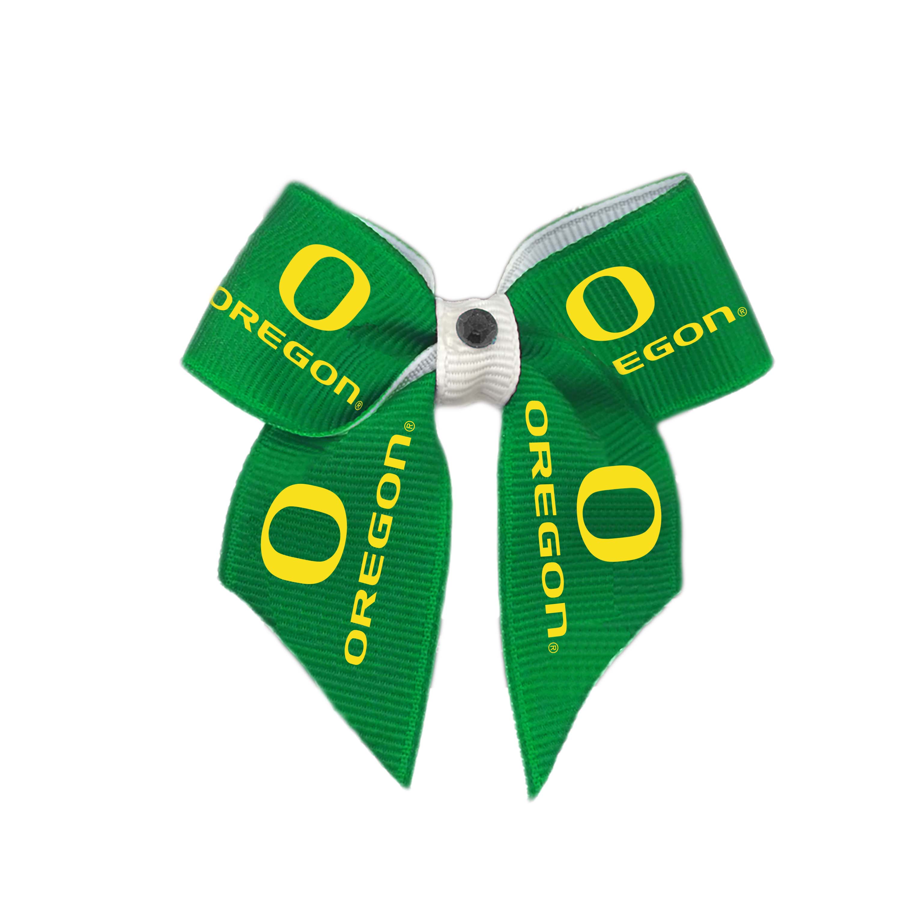 Grosgrain ribbon with printed team logo wrapped and jeweled with rhinestone and barrette closing.