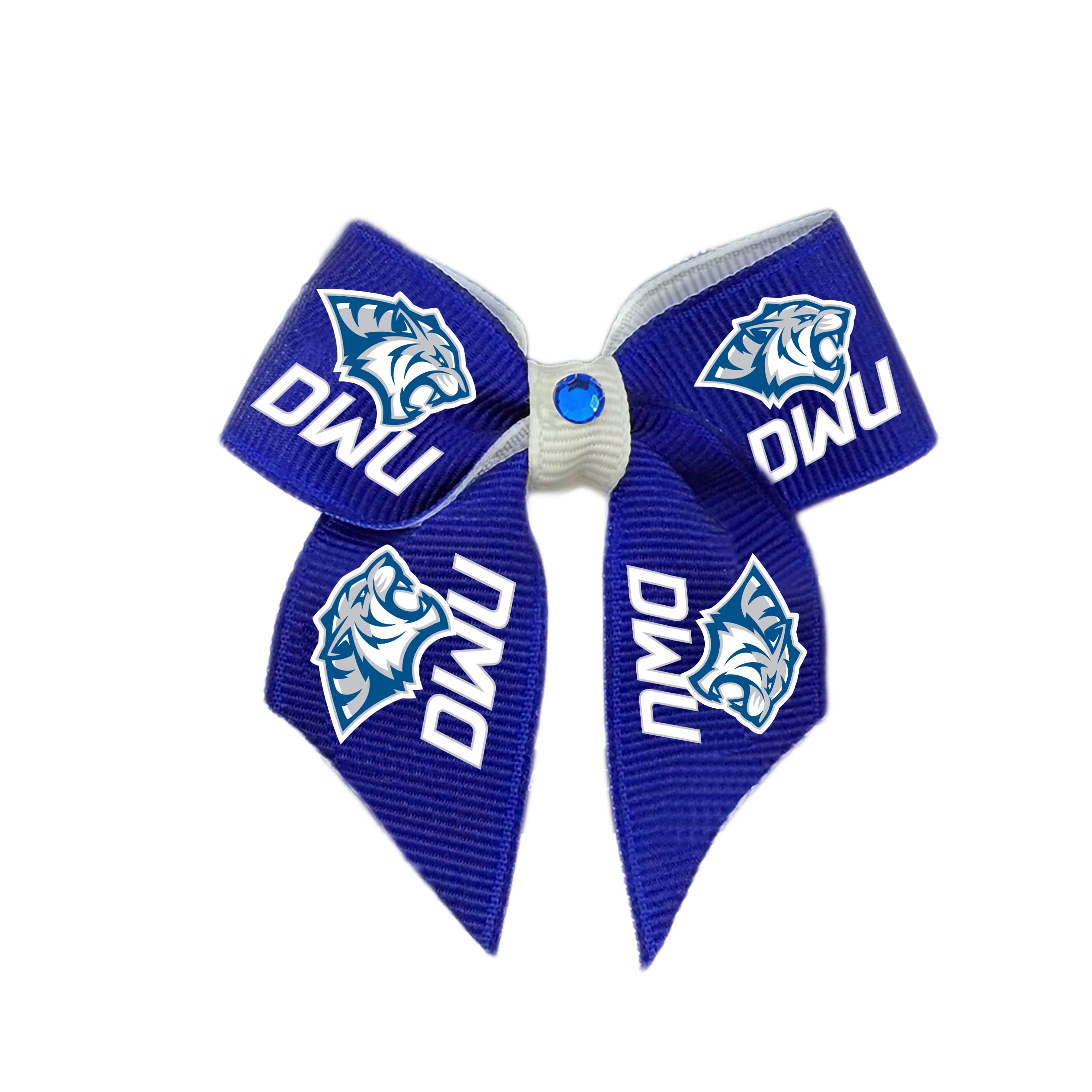 Grosgrain ribbon with printed team logo wrapped and jeweled with rhinestone and barrette closing.