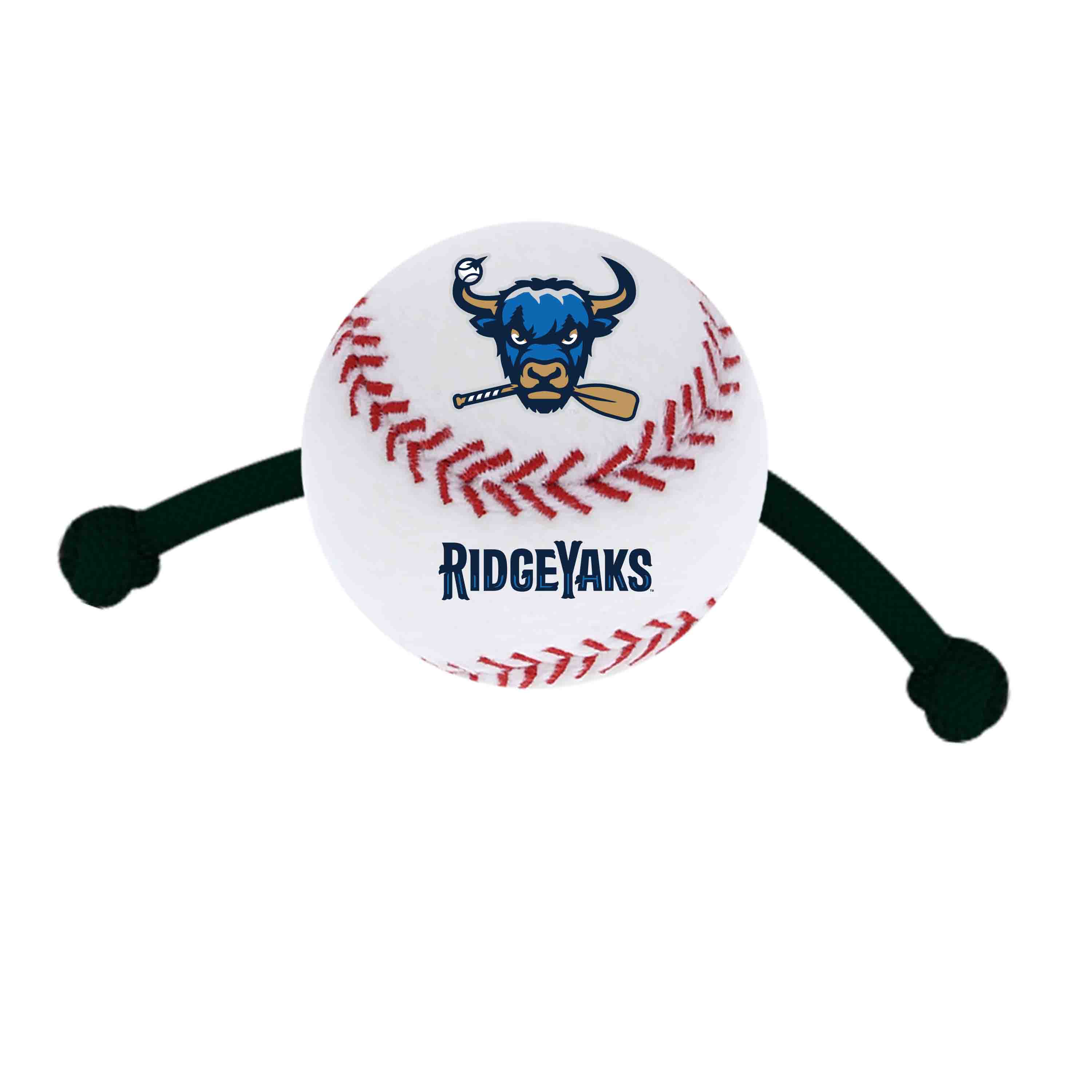 Plush baseball shaped tug toy with non-toxic fill, coordinating rope tug ends, and all-over sublimated print with team logos. Diameter - 6.5”