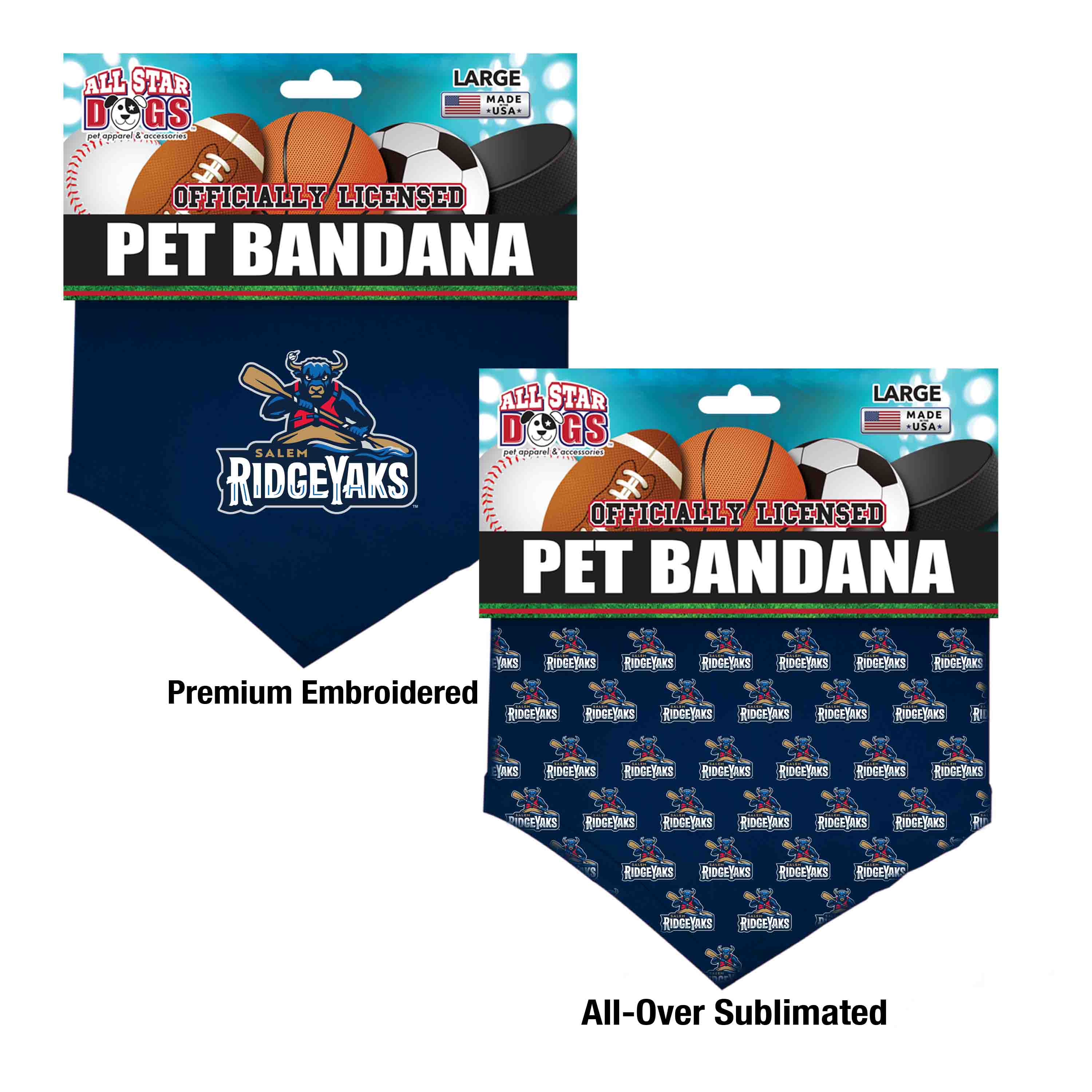 Cotton Shirting pet bandana with embroidered team logo. Also available as all-over print sublimated poly blends.