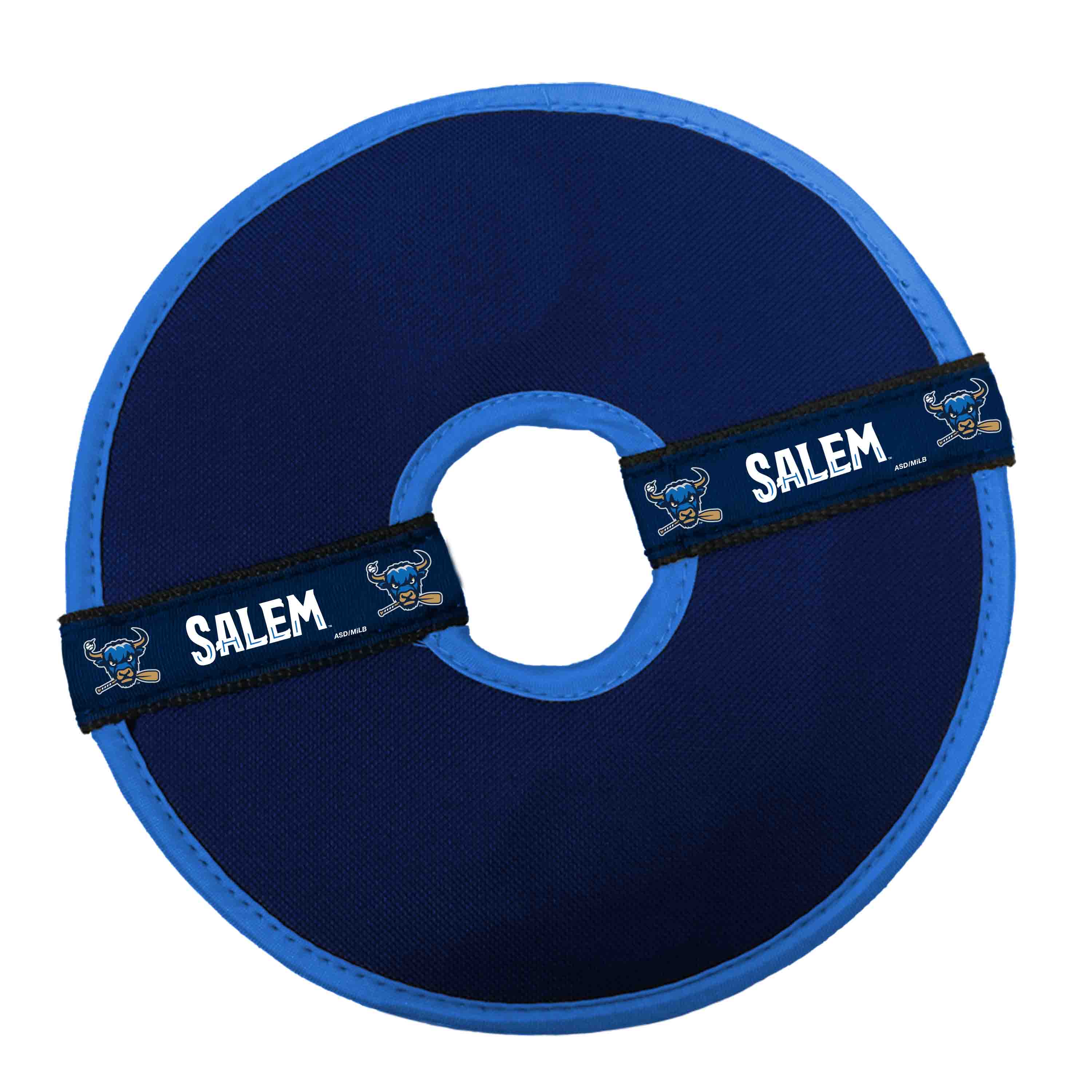 Pet friendly flying discs are constructed out of water repelling 900 denier canvas.