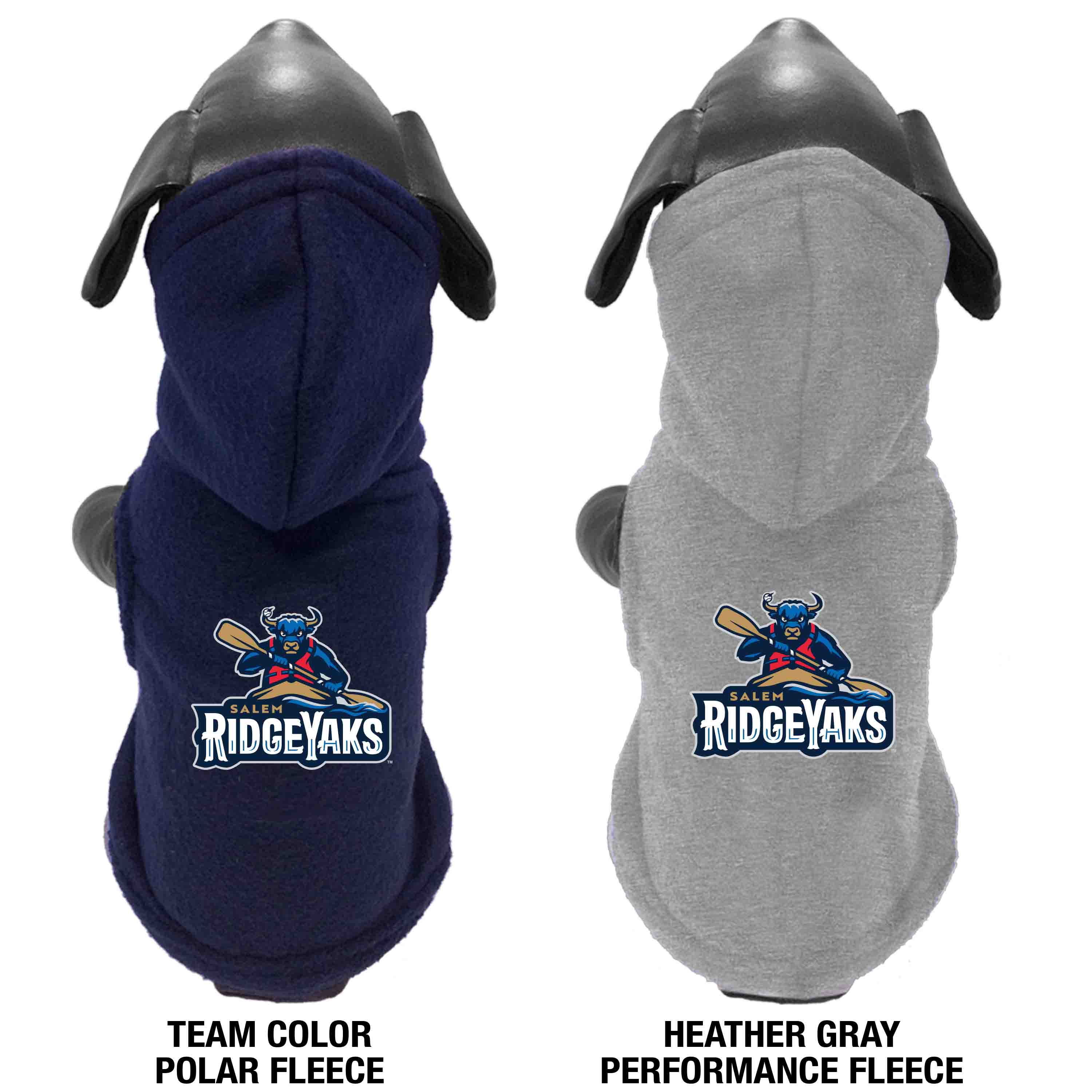 Heavy Polar Fleece hooded pet jacket with leash opening and embroidered team logo.
