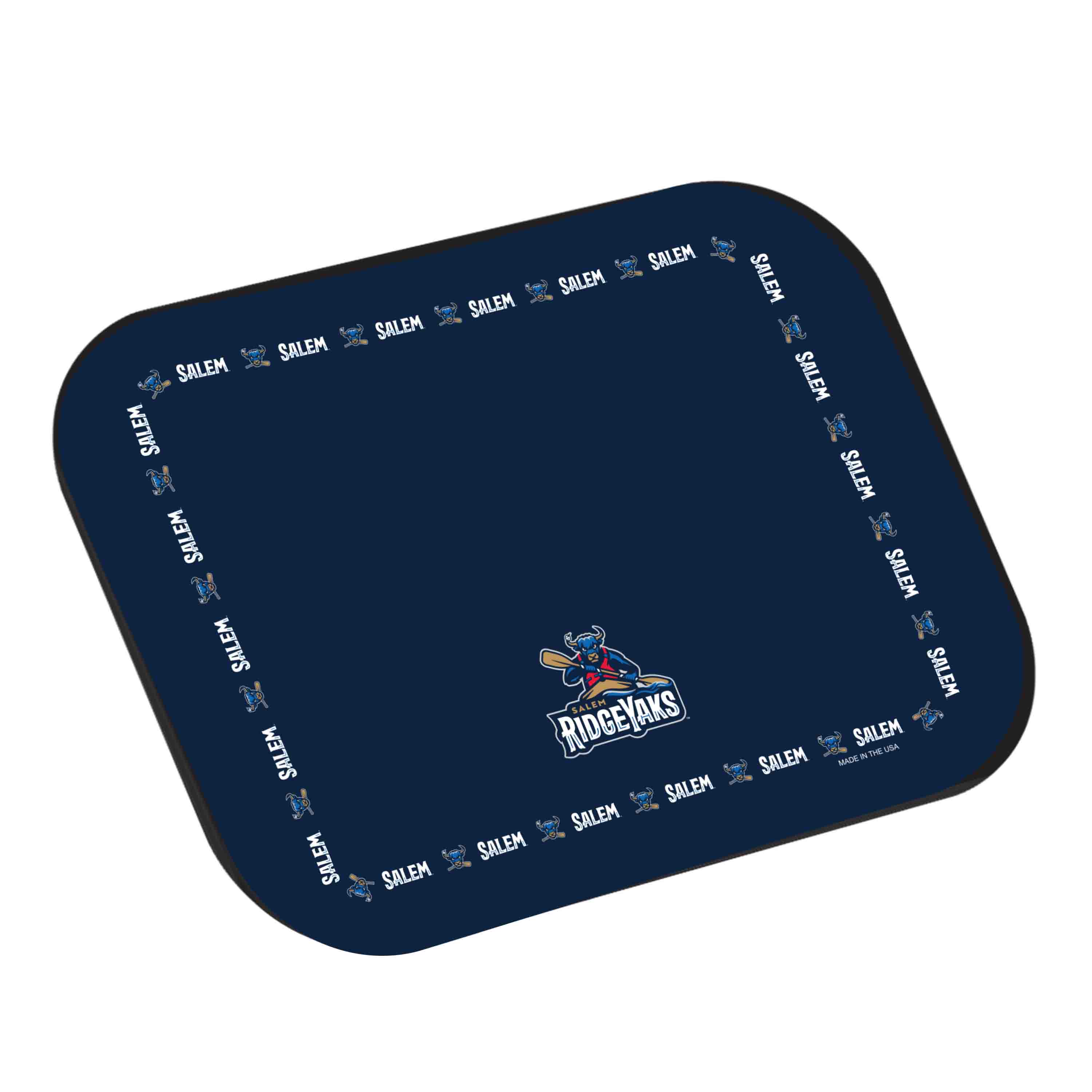 Non-skid placemat with rubber backed polyester face.