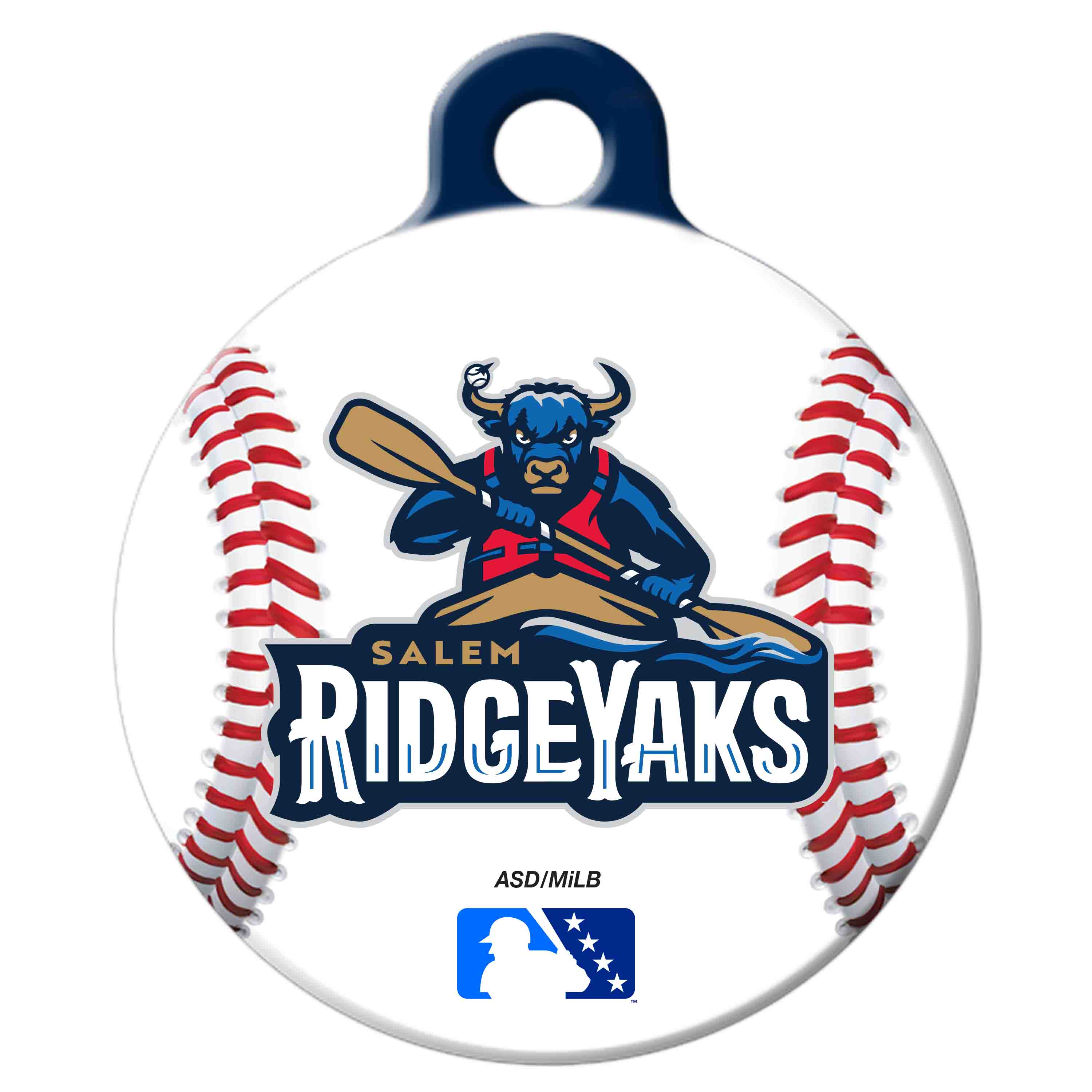 Recycled stainless steel tag with printed team graphics on both sides.