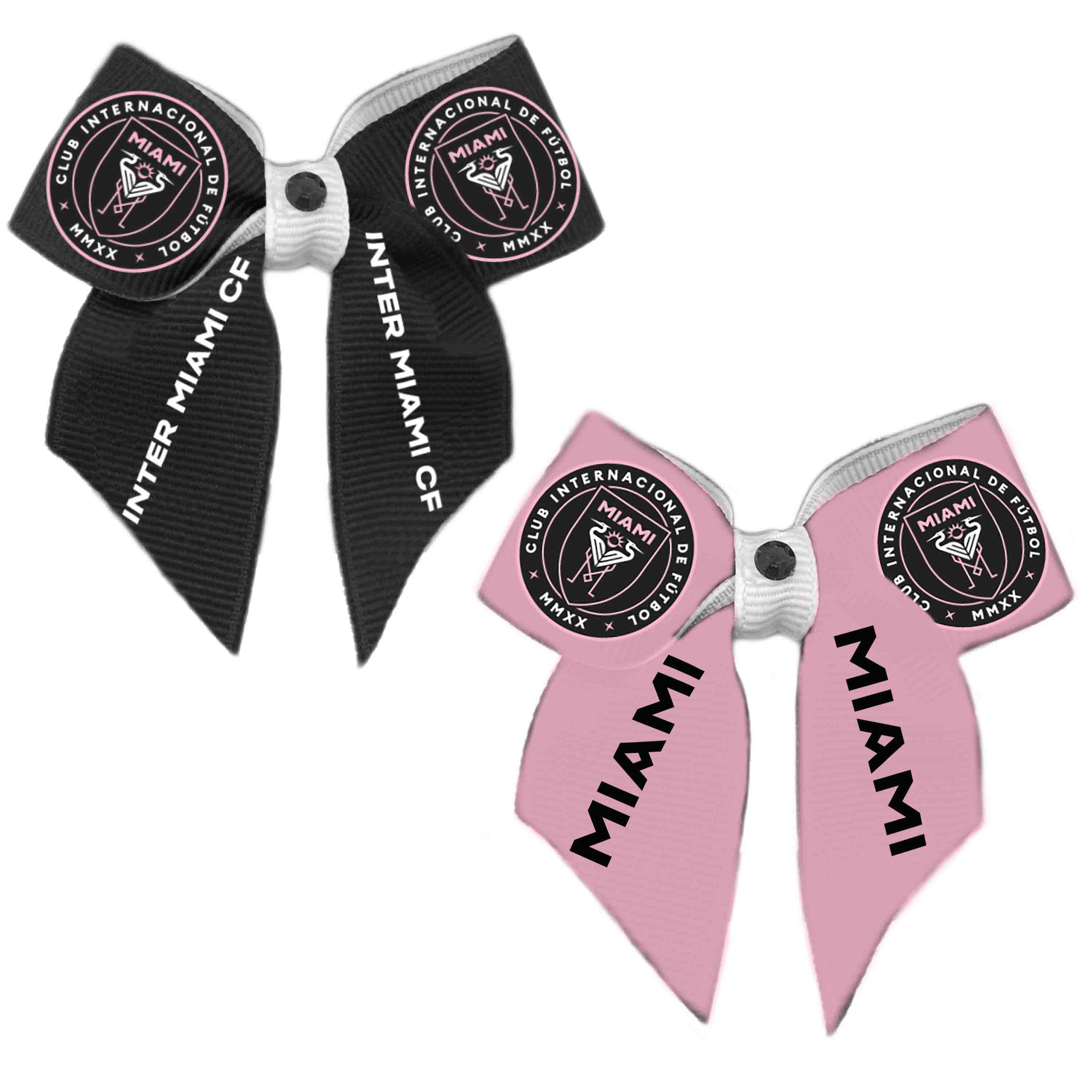 Grosgrain ribbon with printed team logo wrapped and jeweled with rhinestone and barrette closing.