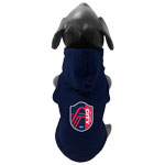 Heavy Polar Fleece hooded pet jacket with leash opening and embroidered team logo.